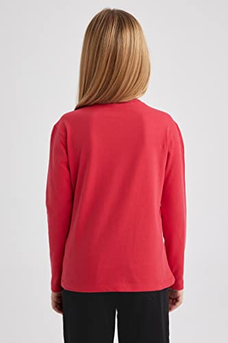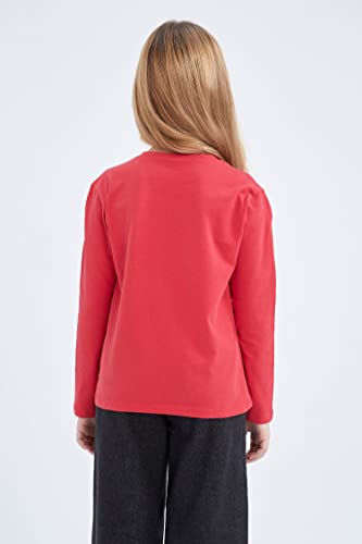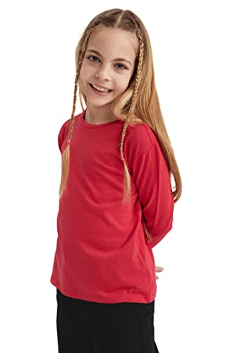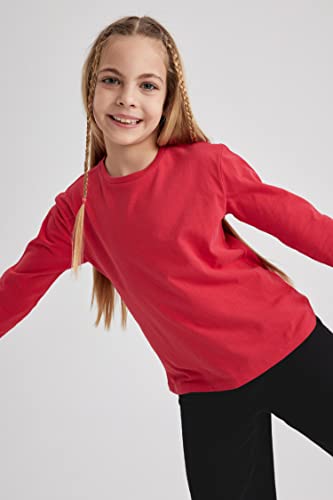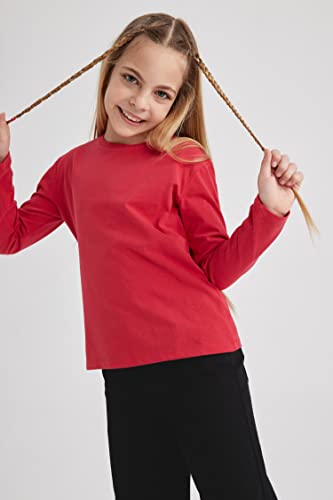 DeFacto - ديفاكتو تيشرت باكمام طويلة وقصة عادية ورقبة دائرية ضيقة واكمام للبنات موديل Z4192A6