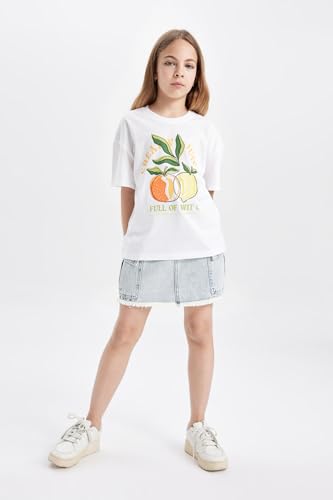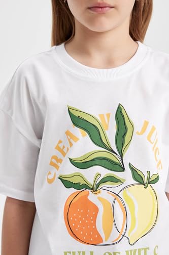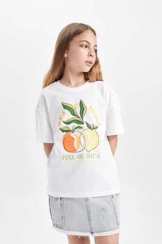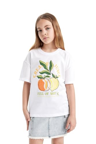 DeFacto - تيشرت منسوج للبنات بأكمام قصيرة وقصة مريحة من ديفاكتو، موديل C4451A8