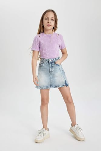 DeFacto - تيشرت منسوج قصير الأكمام بقصة ضيقة وأكمام قصيرة للبنات من ديفاكتو، موديل C3187A8