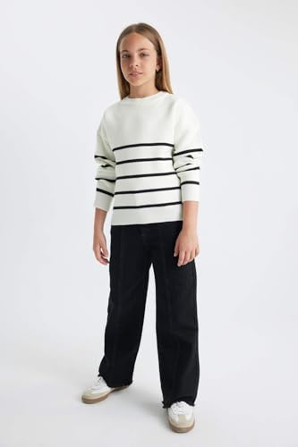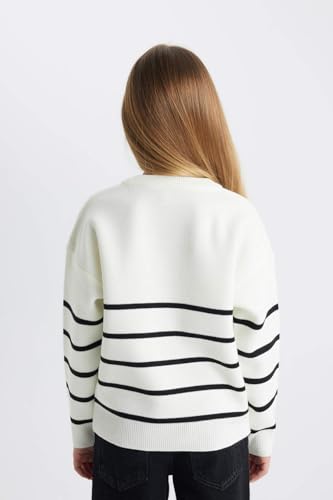 DeFacto - بلوفر تريكو بقصة عادية ورقبة دائرية ضيقة وأكمام طويلة للبنات من ديفاكتو، موديل Z0194A6
