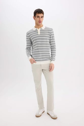 DeFacto - سترة بولوفر من ديفاكتو برقبة بولو للرجال، مقاس قياسي، مصنوعة من الأكريليك، لون رمادي فاتح