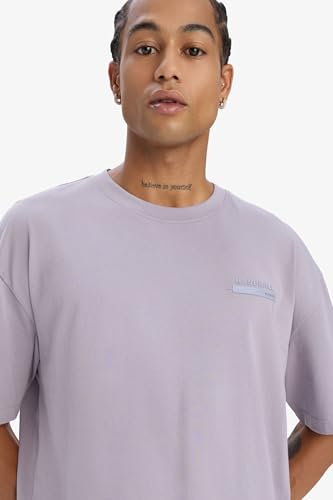 DeFacto - ديفاكتو تيشيرت محبوك بقصة واسعة ورقبة دائرية ضيقة واكمام قصيرة للرجال E2582AX