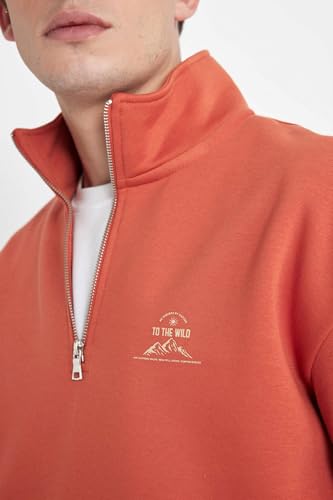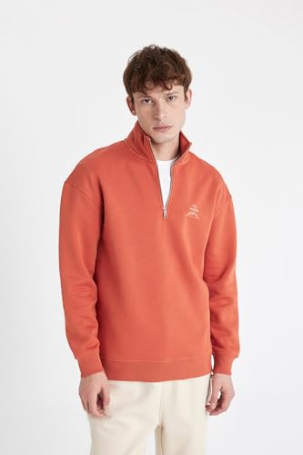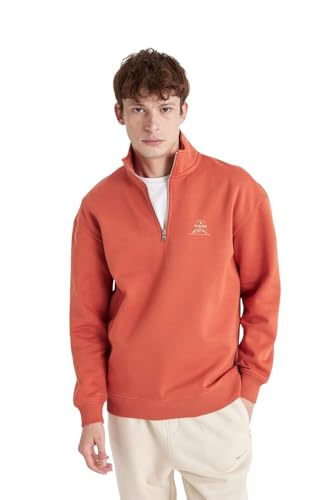 DeFacto - سويت شيرت طراز C6132AX للرجال بياقة عالية، قماش منسوج بتصميم مريح وأكمام طويلة من ديفاكتو