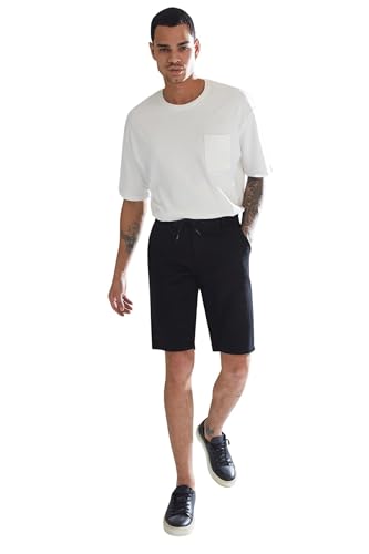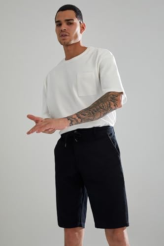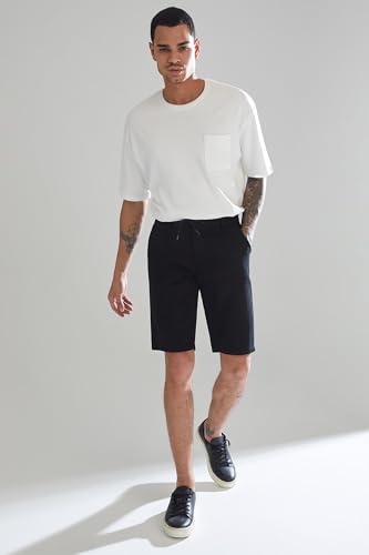 DeFacto - ديفاكتو بنطلون برمودا منسوج بقصة عادية للرجال، لون اسود، مقاس 38