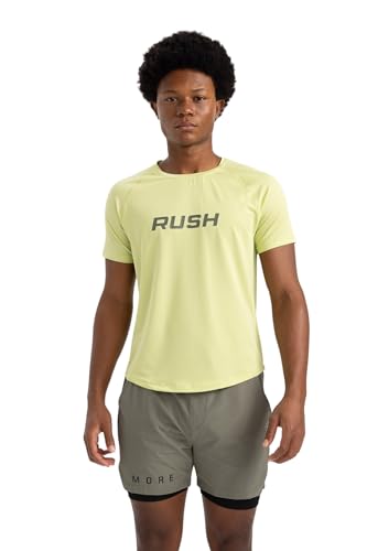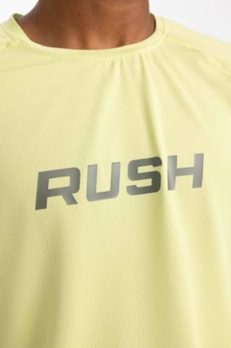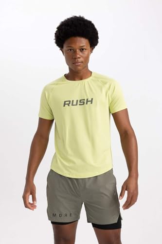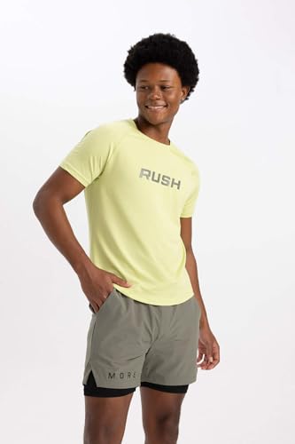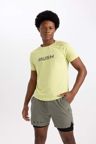 DeFacto - تيشرت منسوج بقصة ضيقة سليم فت ورقبة دائرية ضيقة وأكمام قصيرة للرجال من ديفاكتو، أخضر فاتح، لارج