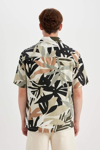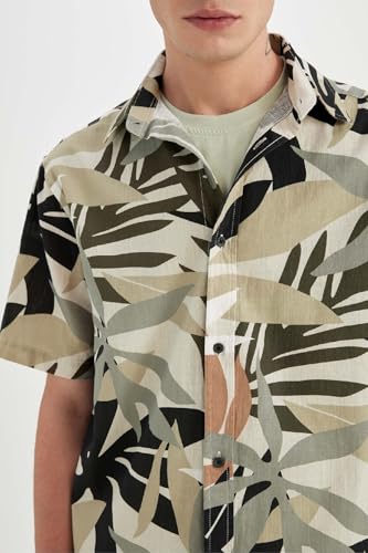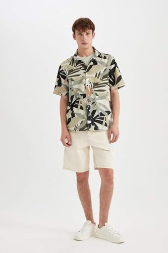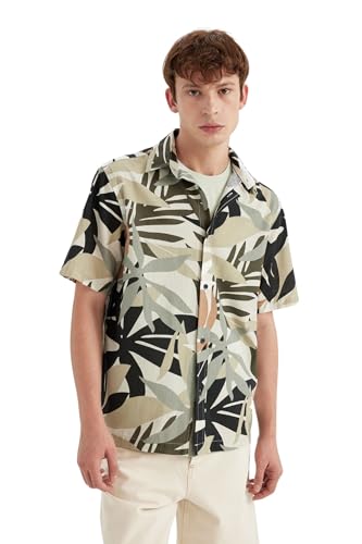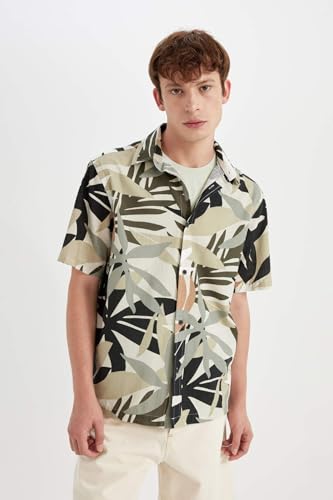 DeFacto - قميص منسوج بقصة عادية وأكمام قصيرة للرجال والشباب C7667AX من ديفاكتو، كاكي، مقاس L لارج