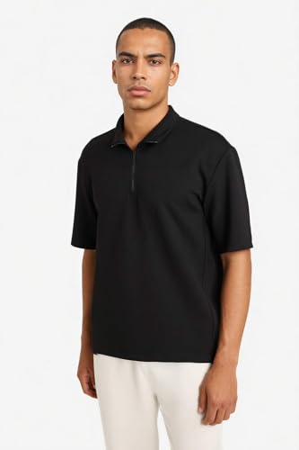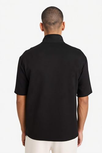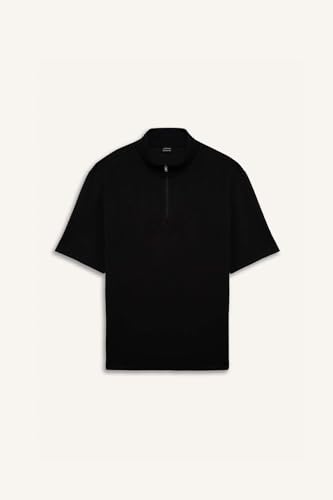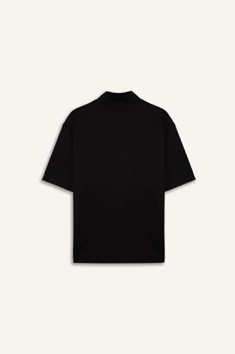 DeFacto - كنزة من ديفاكتو برقبة عالية للرجال، قصة عادية بكم قصير، مصنوعة من البوليستر والفيسكوز والإيلاستين