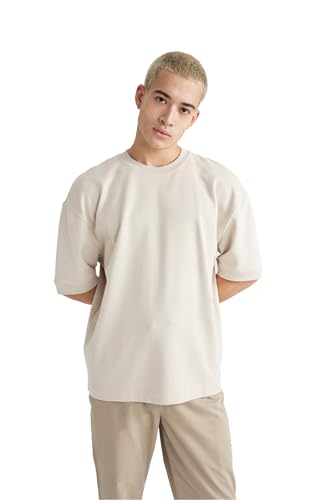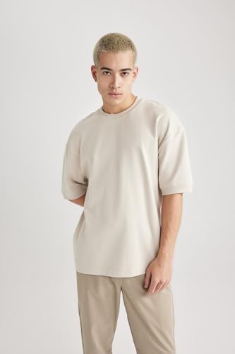 DeFacto - تيشرت بقصة فضفاضة ورقبة دائرية ضيقة وأكمام قصيرة للرجال من ديفاكتو - B4844AX