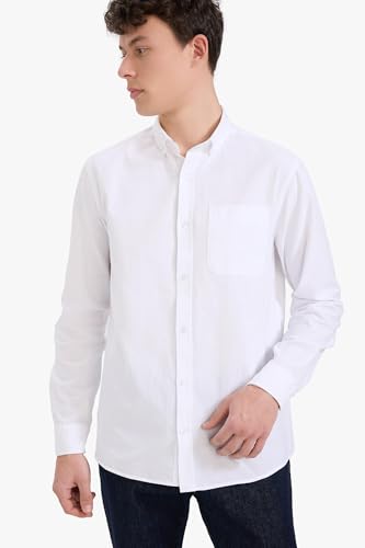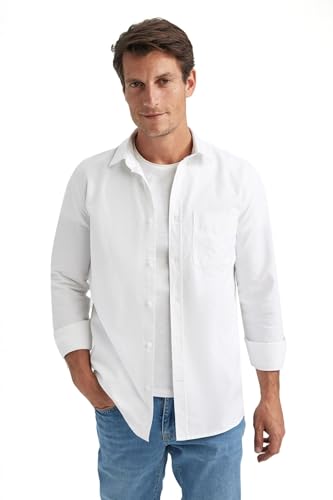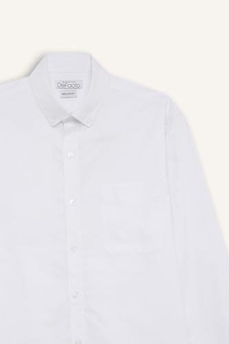 DeFacto - قميص كاجوال منسوج برقبة بولو بقصة عادية وأزرار وأكمام طويلة للرجال من ديفاكتو، A8028AX