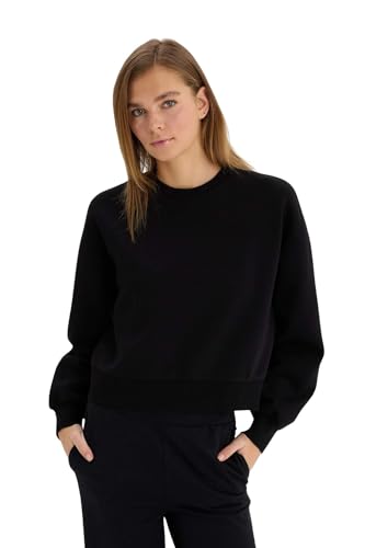 DeFacto - ديفاكتو سويت شيرت محبوك برقبة دائرية ضيقة للنساء E4732AX، اسود، مقاس M