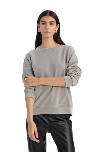 DeFacto - ديفاكتو سويت شيرت منسوج بقصة واسعة للنساء، لون رمادي فاتح، مقاس L