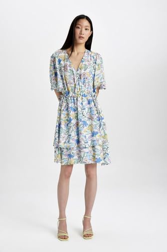 DeFacto - فستان وجيبة كاجوال للنساء برقبة على شكل حرف V وأكمام قصيرة وطويلة من نسيج محبوك، موديل C7223AX، فستان منسوج من نسيج محبوك بأكمام طويلة من ديفاكتو
