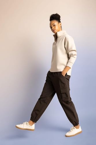 DeFacto - بنطلون نسائي بقصة عادية ونسيج محبوك من الأسفل C0373AX من ديفاكتو