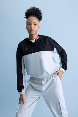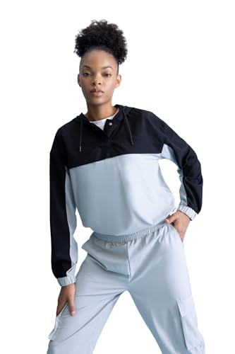بلوزة منسوجة بغطاء للرأس وأكمام طويلة وقصة قياسية B3249AX