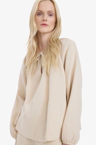 DeFacto - بلوزة للنساء كاجوال كبيرة الحجم برقبة على شكل حرف C وأكمام طويلة منسوجة من ديفاكتو (عبوة من 1 قطعة)