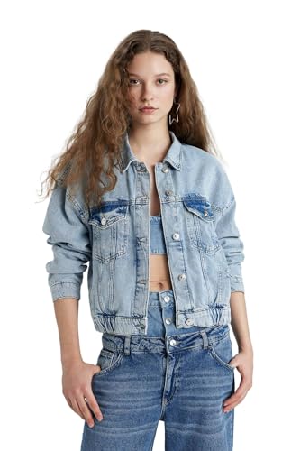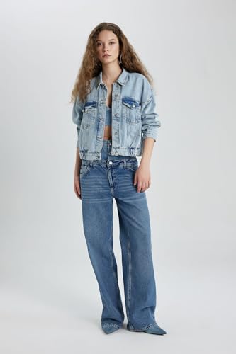 DeFacto - جاكيت جينز بتصميم منتفخ حريمي من ديفاكتو، C4112AX
