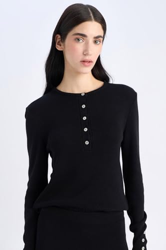 DeFacto - بلوفر تريكو كاجوال طراز E5345AX للنساء برقبة دائرية ضيقة وأكمام طويلة من ديفاكتو