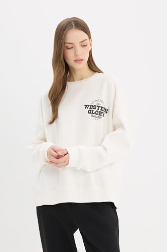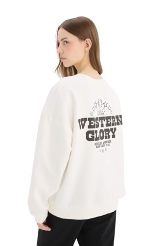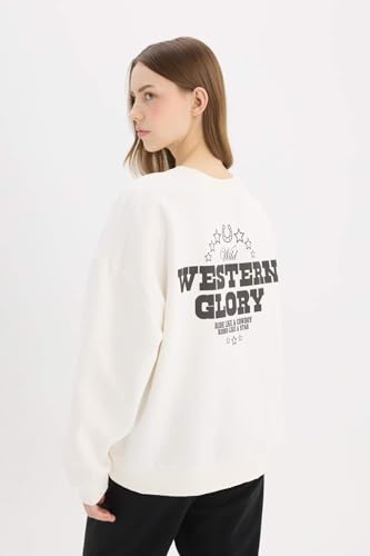 DeFacto - سويت شيرت طراز E4934AX فضفاض برقبة دائرية ضيقة وأكمام طويلة من ديفاكتو