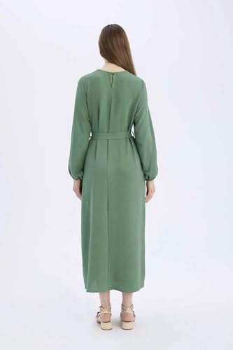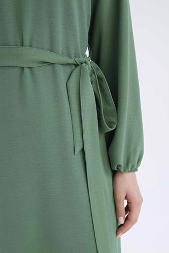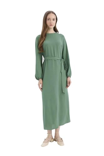 DeFacto - فستان للنساء بقصة عادية ورقبة C وأكمام طويلة وجيبة، فستان سي ان اس من نسيج محبوك بأكمام طويلة طراز E5268AX من ديفاكتو
