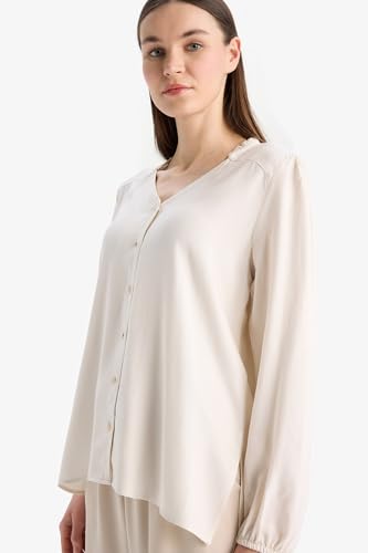 DeFacto - قميص نسائي تقليدي بقصة عادية وقبة C وأكمام طويلة منسوج من ديفاكتو (عبوة من قطعة واحدة)