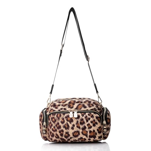 dejAVU - ديجافو شنطة كروس متعددة الجيوب بنمط جلد الفهد - بيج وبني وبني كرمل، للفتيات