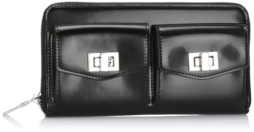 dejAVU - ديجافو محفظة بسوستة للاغلاق بجيبين اماميين - اسود، جلد، للفتيات