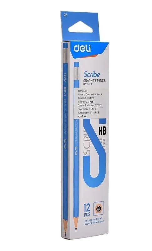 deli - قلم رصاص جرافيت HB بأستيكة سكريب من ديلي U508 - 12 قطعة