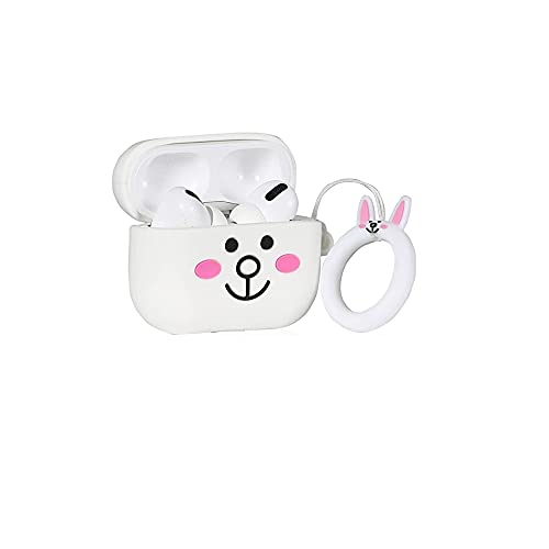 other - جراب بتصميم ارنب مع حزام لسماعات ايربودز برو - ابيض، البوليستر