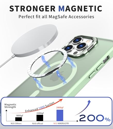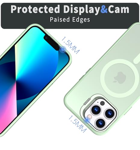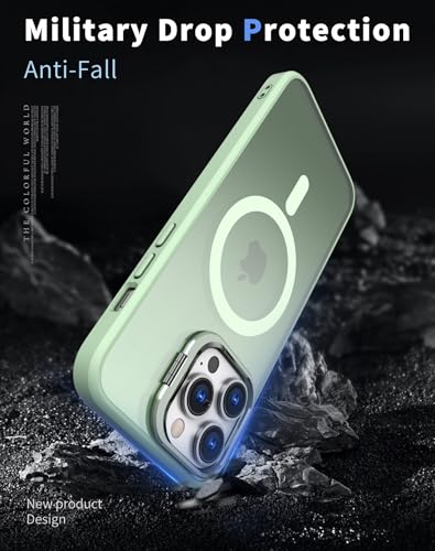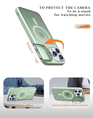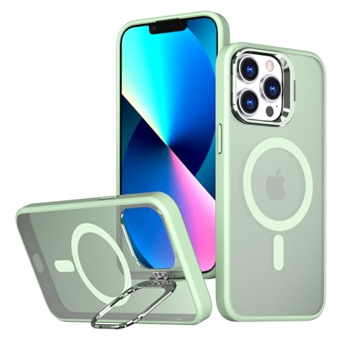 Generic - جراب حماية بتصميم مغناطيسي للشحن اللاسلكي مع مسند للكاميرا، جراب حماية عسكري رفيع مضاد للصدمات متوافق مع آيفون 13 برو ماكس لون أخضر (Mint green)