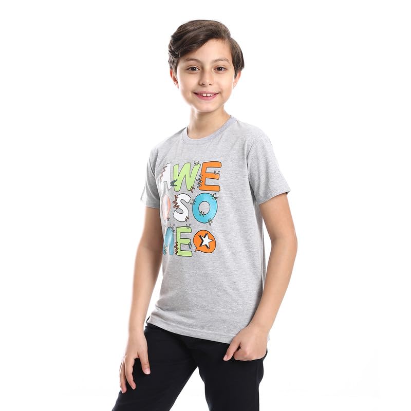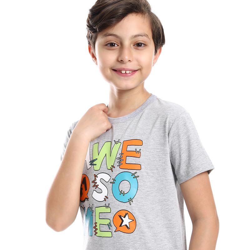 Diadora - تيشرت قطن مطبوع للاولاد بعمر 2-3 سنوات، لون رمادي