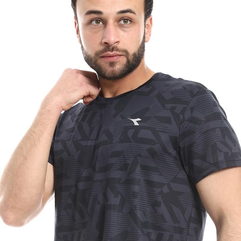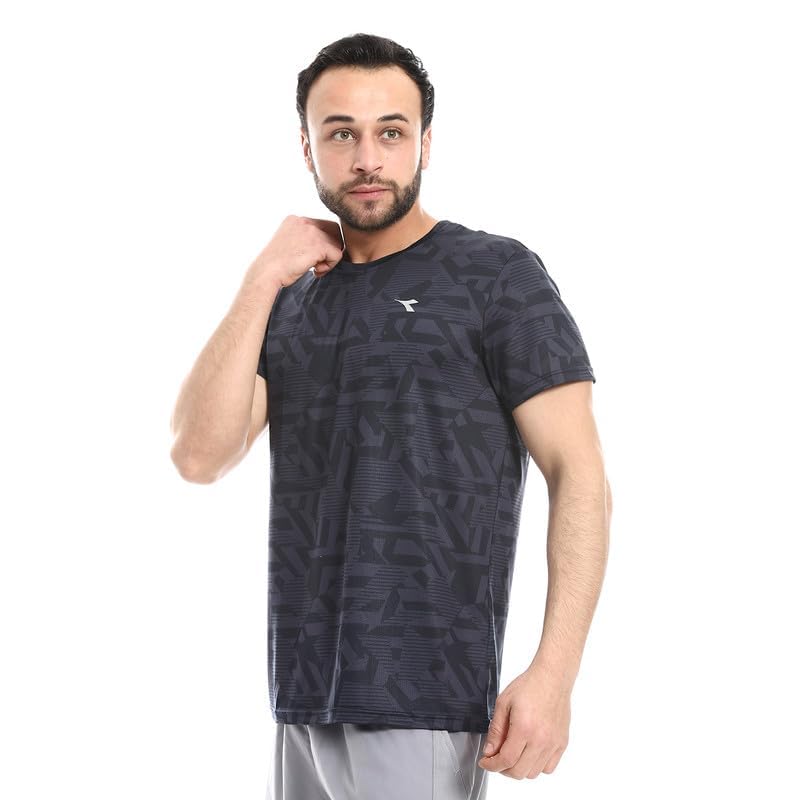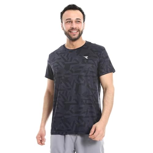 Diadora - تيشرت رياضي مطبوع للرجال مقاس L، اسود/رمادي
