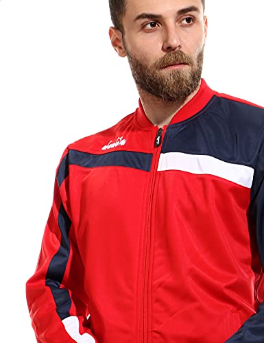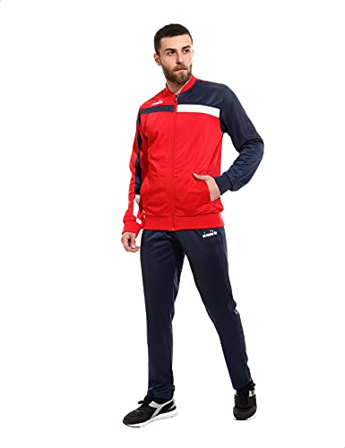 Diadora - طقم رياضي للتمرين جاكيت لونين بسوستة مع بنطلون طويل قصة مستقيمة بخصر مطاطي مرن للرجال من ديادورا، مقاس M