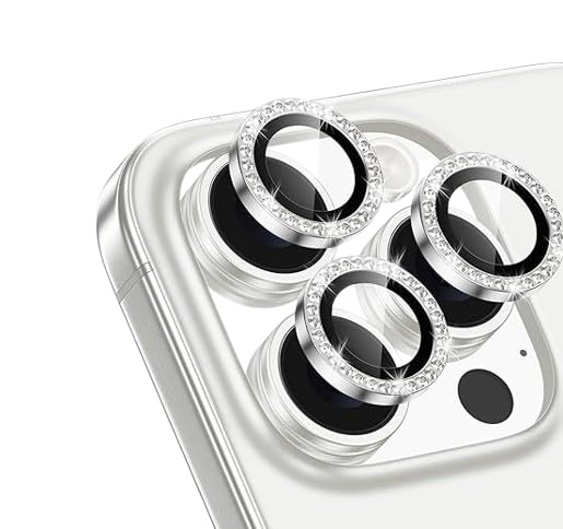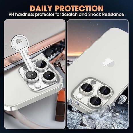 Generic - واقي عدسة الكاميرا لموبايل آيفون 16 برو و16 ماكس من دايموند لون أبيض تيتانيوم