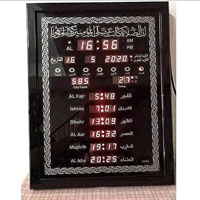 Generic - ساعة رقمية لعرض أوقات الصلاة الاسلامية، بلاستيك زجاج، أسود، LED