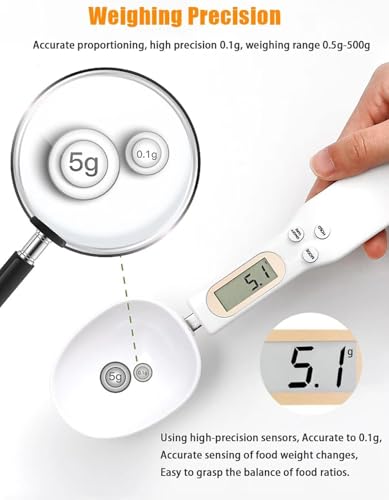 Generic - ميزان معلقة رقمي للمطبخ، ميزان مطبخ رقمي بدقة 0.1 جرام، مزود بشاشة LCD دقيقة، أداة متعددة الوظائف لقياس المكونات بدقة، سعة 500 جرام (أبيض)