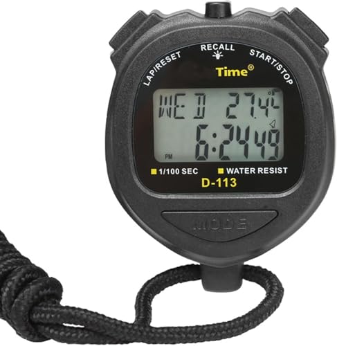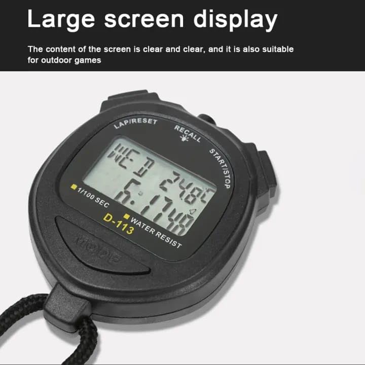 Generic - ساعة توقيت رقمية مزودة بمؤقت وساعة توقيت مقاومة للماء مع إضاءة خلفية وذاكرة 60 لاب وشاشة بخطين مع حبل للسباحة والجري والماراثون والمنافسة