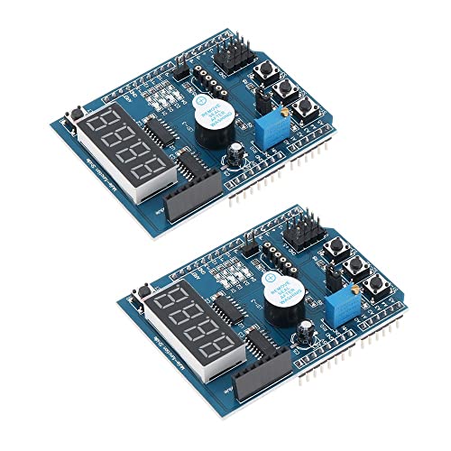 DiGiYes - لوحة توسعة متعددة الوظائف، وحدة درع مستشعر، درع بروتوشيلد متعدد الوظائف مع شاشة عرض رباعية الأرقام متوافقة مع اردوينو UNO R3. من ديجي يس، 2 قطعة
