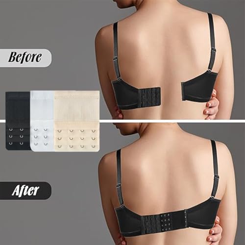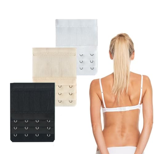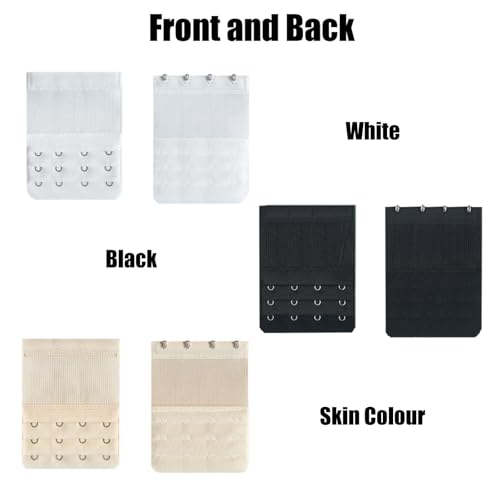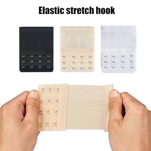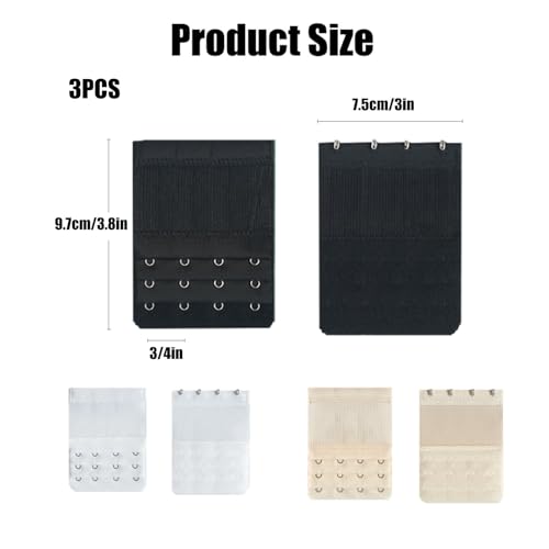 dinghaole - 3 قطع من وصلات تمديد حمالة الصدر المرنة دينجهاول 4 خطافات و3 صفوف ناعمة ومريحة حزام صدر ناعم ومريح ومشابك خلفية مجموعة مشابك لون ابيض واسود للنساء