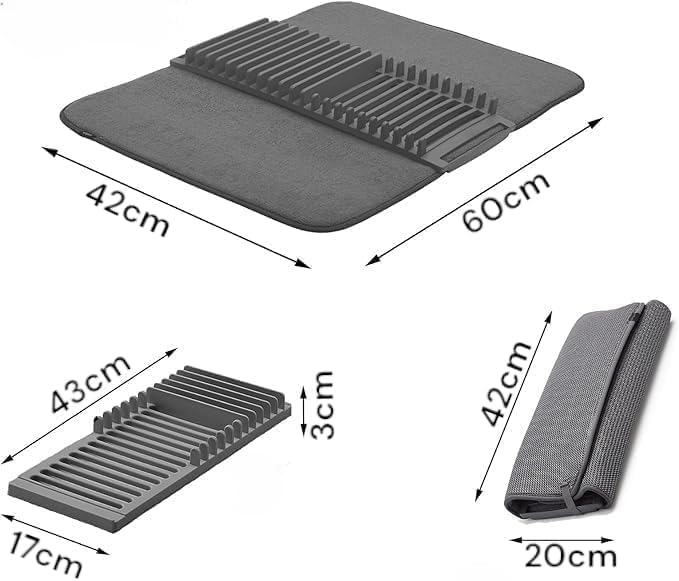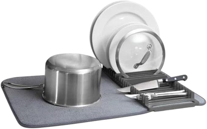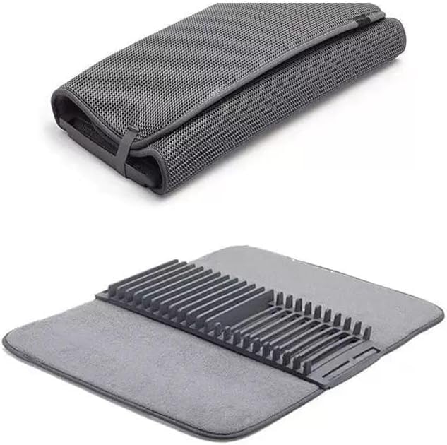 Generic - بساط تجفيف الاطباق مع حامل ملعقة، بساط مبطن من المايكروفايبر، نمط اوراق شجر، رمادي، وسادة تصريف المطبخ، حصيرة تجفيف الاطباق مع طبق