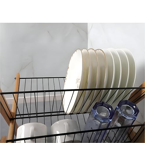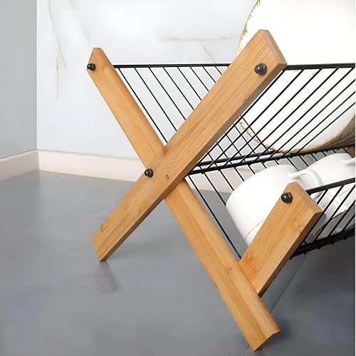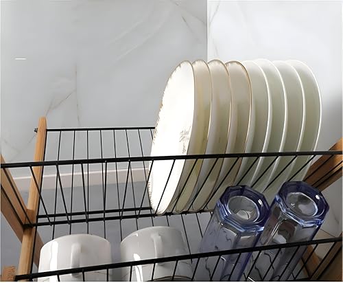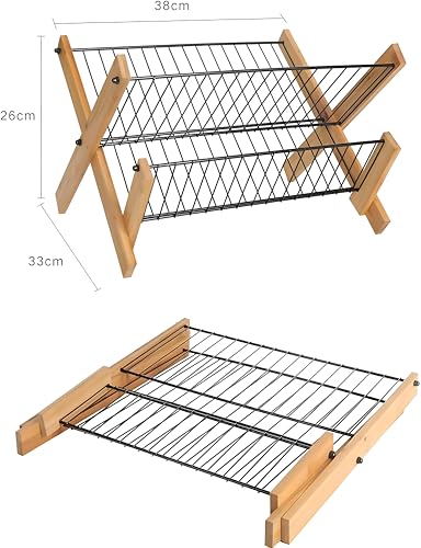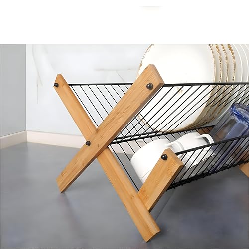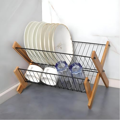 Generic - رف تجفيف الاطباق - نظام تجفيف الاطباق ثلاثي الطبقات قابل للطي من الخيزران للاستخدام الأمثل للمساحة وترتيب أكثر أناقة