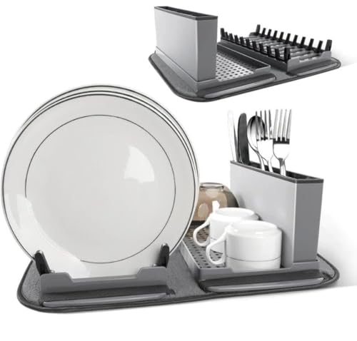 Generic - مجموعة تجفيف الأطباق مكونة من رف تجفيف ومفرش مايكروفايبر وصفاية أطباق قابلة للطي مناسبة لتنظيم أدوات المائدة وتجفيف الأطباق