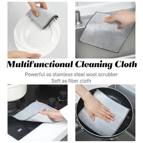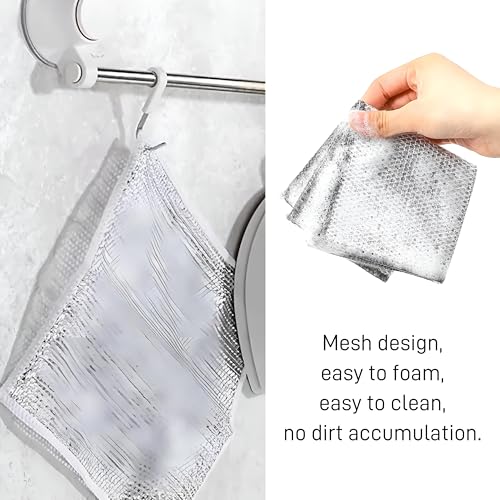 - 【تنظيف قوي】سطح محبوك بسلك فضي قوي مثل منظف الصوف المصنوع من الستانلس ستيل، ينظف جميع أنواع البقع العنيدة بسرعة.