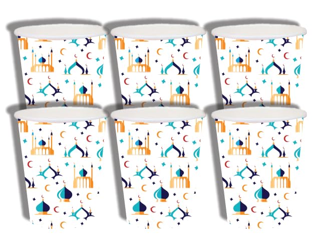 Generic - أكواب ورقية للاستعمال مرة واحدة، نمط إسلامي، تصميم المساجد والهلال، 6 قطع، متعددة الألوان