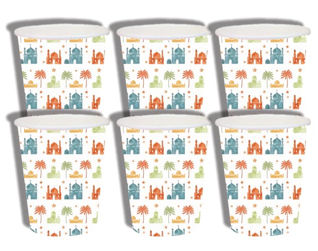 Generic - اكواب ورقية للاستعمال مرة واحدة بنمط مسجد وشجرة نخيل ملونة، ادوات مائدة للحفلات، 6 قطع