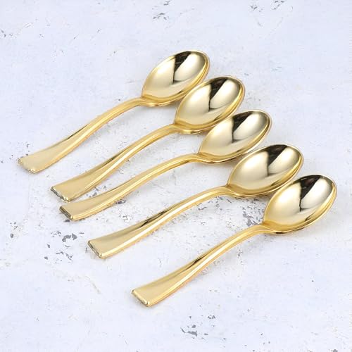 Generic - ملاعق يمكن التخلص منها - جرب راحة الملاعق الأنيقة للاستخدام مرة واحدة للحفلات، وسهلة التنظيف وقابلة لإعادة التدوير، ومثالية للتنظيف الخالي من التوتر بعد أحداثك مقاس 2*9.8 سم (جولد 50 قطعه)