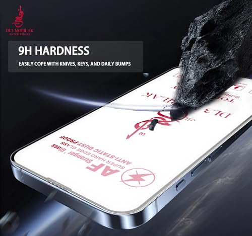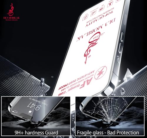 Dl3 Mobilak - شاشة حماية ايه اف بطبقة من الزجاج المقوى بدرجة صلابة 9H عالية الدقة HD بدون فقاعات مزودة بفلتر غبار مدمج وإطار سهل التركيب لموبايل آيفون 16 برو شاشة 6.3 بوصة من دلع موبايلك