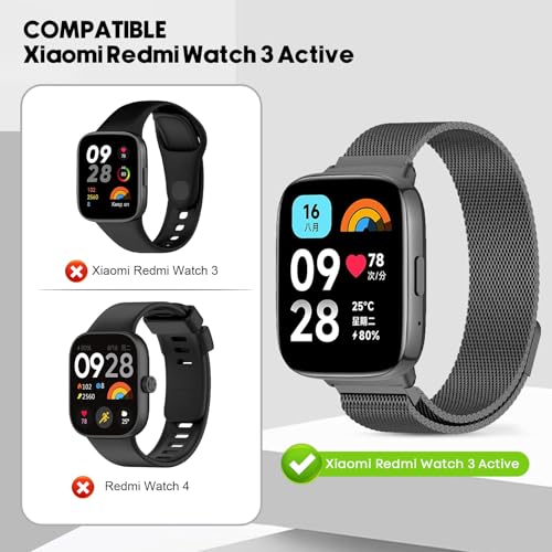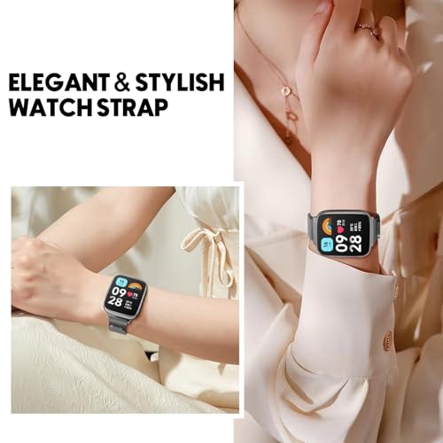 Dl3 Mobilak - سوار شبكي من دلع موبايلك متوافق مع ساعة شاومي ريدمي واتش 3 اكتيف و3 لايت، مصنوع من الستانلس ستيل بلون فضي للجنسين قابل للتعديل