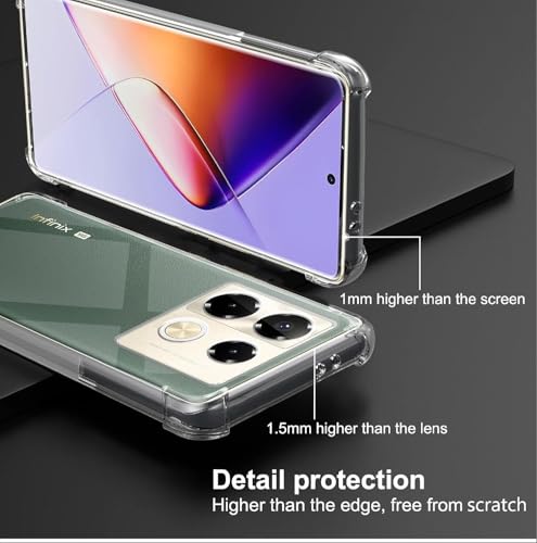 - متوافقة مع: جراب حماية شفاف لموبايل انفينيكس نوت 40 برو شبكة الجيل الخامس 5G X6851 فقط. يساعدك على الوصول إلى جميع المنافذ والأزرار، ولا يؤثر على الكاميرا أو خاصية اللمس. مضاد للخدش على الظهر، يحمي موبايلك من الصدمات والأضرار والغبار.