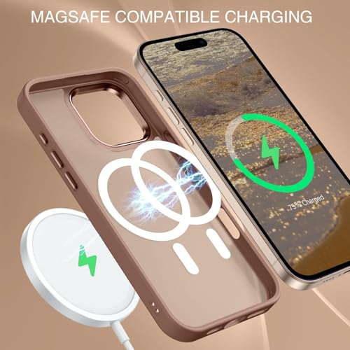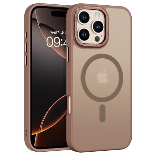 Dl3 Mobilak - جراب حماية مغناطيسي صلب مضاد للصدمات بتصميم مطفي نحيف متوافق مع ماج سيف لموبايل آيفون 16 برو ماكس 6.9 بوصة للرجال والنساء من دلع موبايلك، لون بني (Desert Brown)