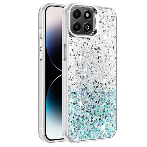 Dl3 Mobilak - جراب حماية صلب بتصميم شفاف ولامع بإطار ناعم ممتص للصدمات من البولي يوريثين المقاوم للحرارة للنساء والبنات متوافق مع موبايل هونر X6b من دلع موبايلك (لون أبيض وأخضر)
